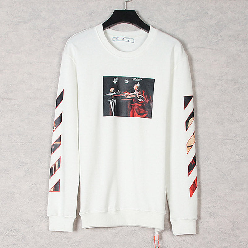 OFF WHITE Caravaggio Oil Painting Print Round Neck Pullover Sweatshirts